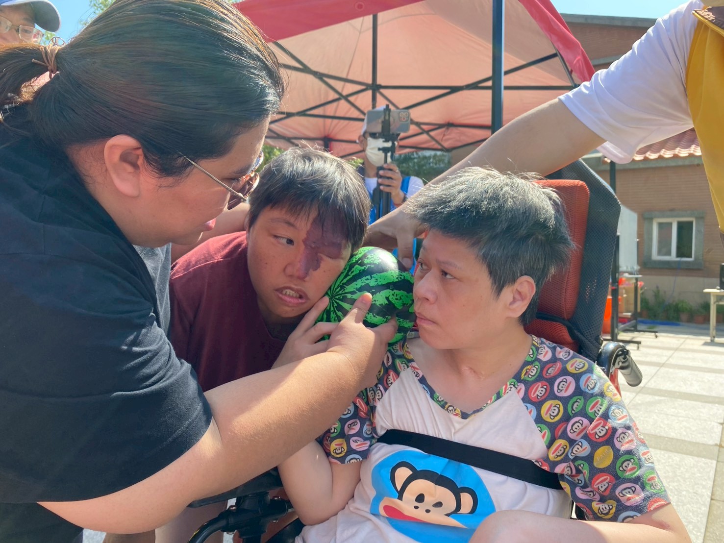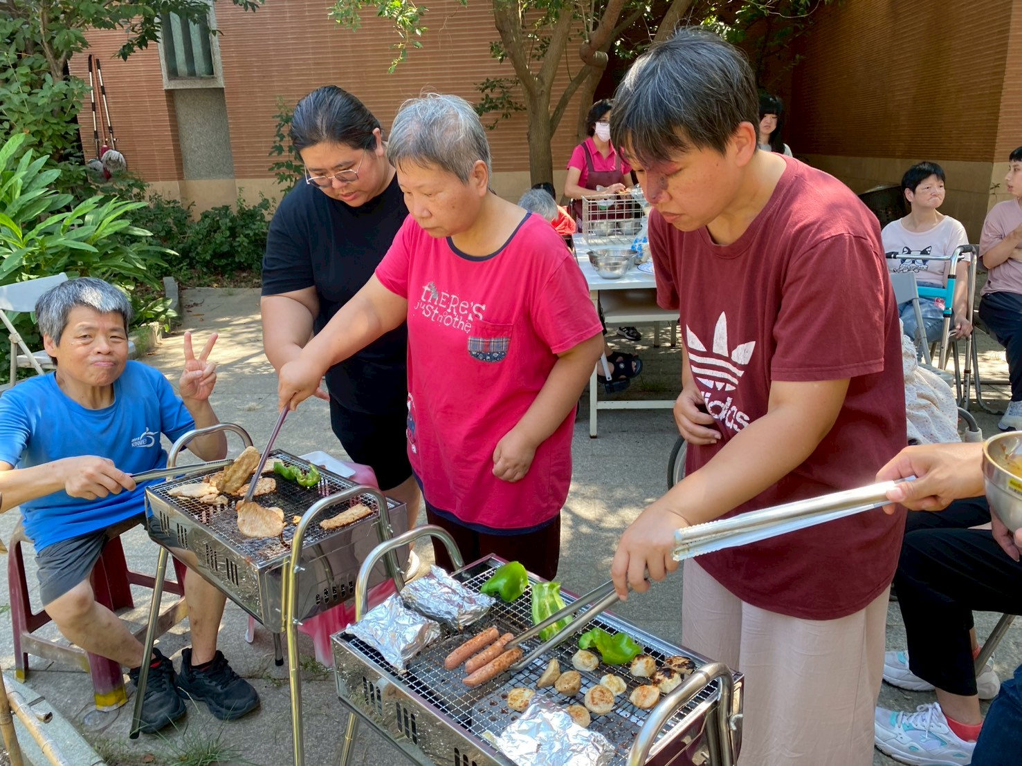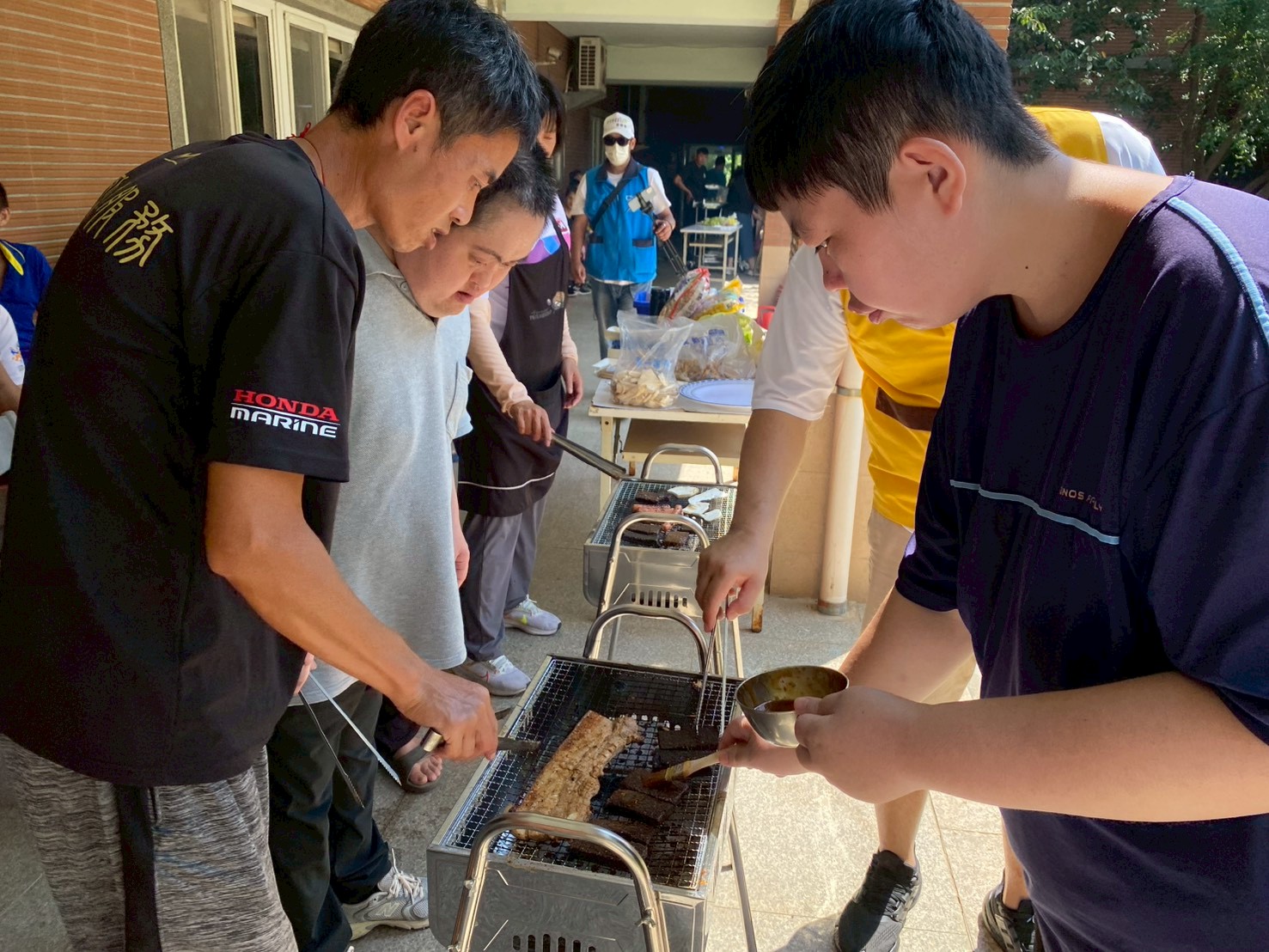 活動現場在志工夥伴們的熱情參與下充滿笑聲與歡樂,不僅有趣味博餅遊戲,還有香氣四溢的烤肉時光,