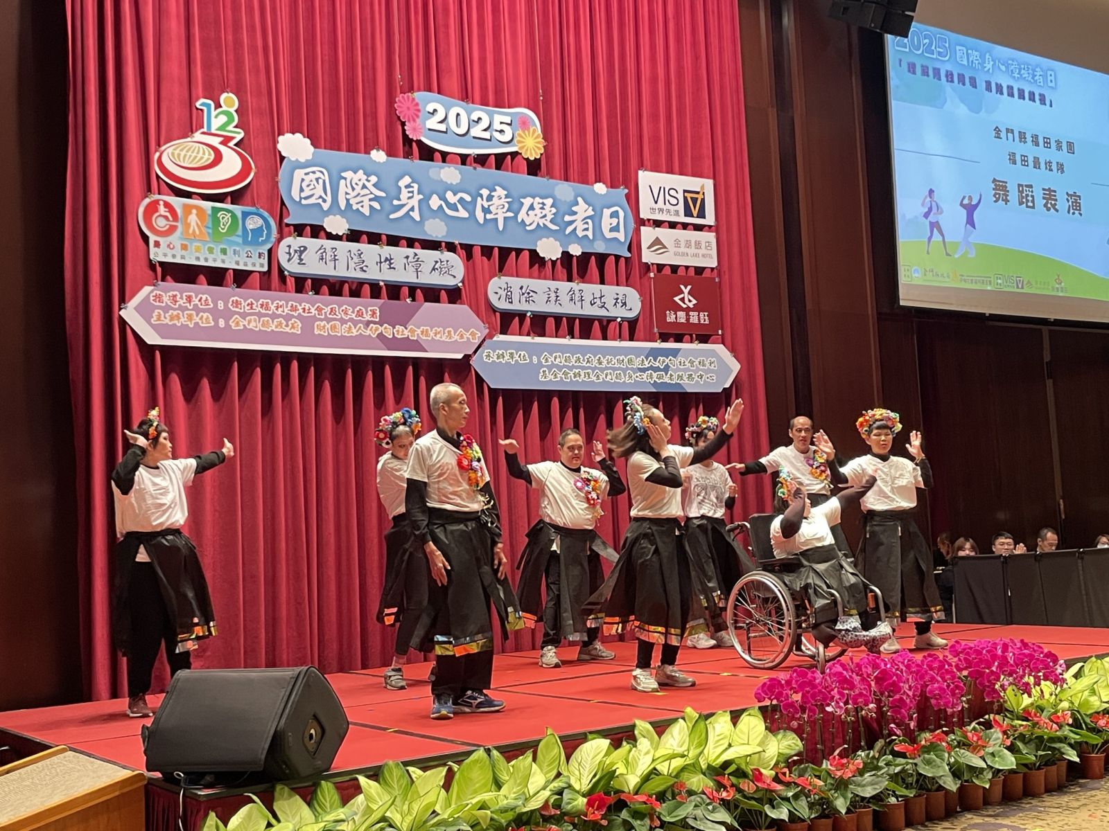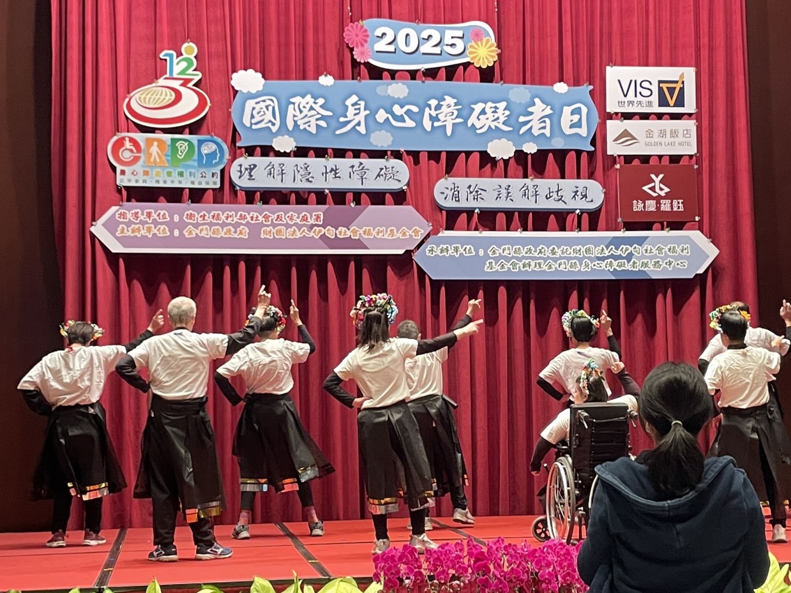 在這次由金門縣政府主辦、財團法人伊甸基金會承辦的「國際身障日」活動中,我們的服務對象特地化上美麗的妝、戴上繽紛花圈,自信地站上舞台演出〈癡情玫瑰花〉。 感謝主辦及承辦單位給予我們展現自我的舞台,讓每位參與者都能在燈光下綻放屬於自己的光芒。